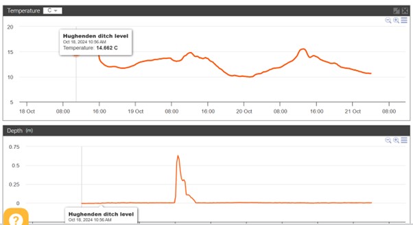 - I have installed a camera at Winnies cottage and a pressure transducer in the ditch on Warrendene rd. We captured the storm 10 days or so ago. I will retrieve camera data next week: