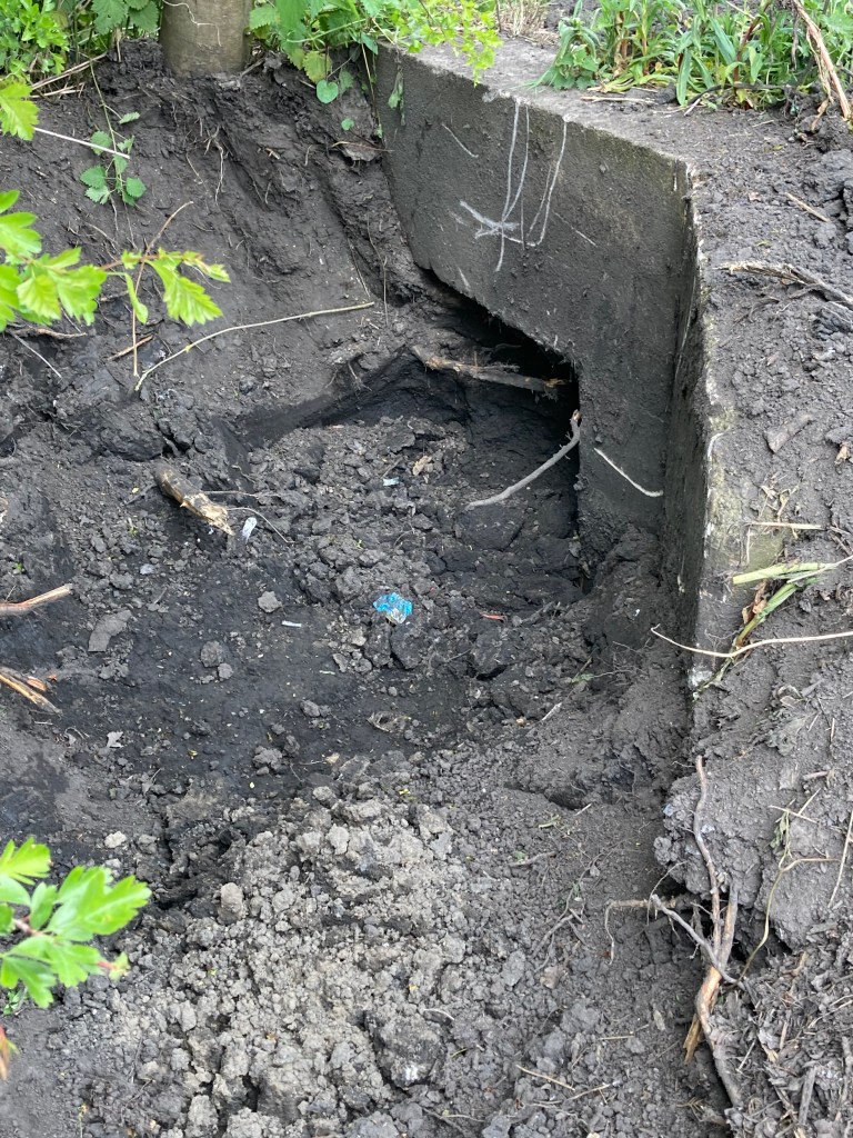 There had been reports of water seeping through the road surface near the foot of Cryers Hill, and about 50 metres along towards High Wycombe. On a very wet day, we eventually spotted water bubbling up in the hedge on the pumping station side of the road, behind the bus stop. On closer inspection this turned out to be a sizeable culvert, but which was almost entirely blocked up and clearly had not been cleaned out for years.