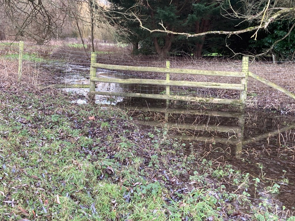 The stream is now running throughout the village and at pace. There have been concerns about the area of the pumping station where the stream, springs and road drain run-off all have to navigate their way round and under the pumping station. Fortunately the water appears to be running easily through into the field (Seven Springs Field?) without any backing up anywhere. Not pretty but it’s working.